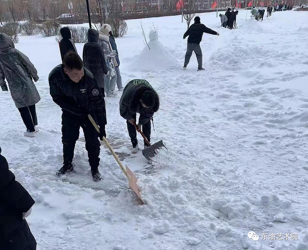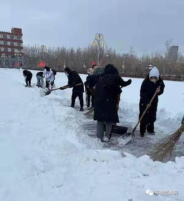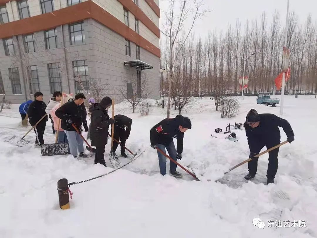 为了给老师同学们开辟一条道路,艺术院的大一新生们冒着严寒和风雪清扫着艺术院楼前广场,米乐mile体育官网领导也加入到扫雪的队伍中与同学们一同克服风雪困难!