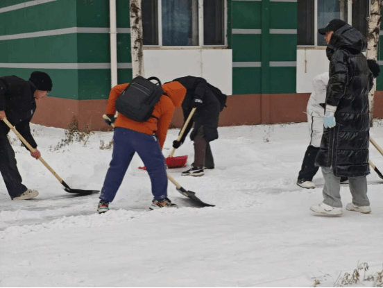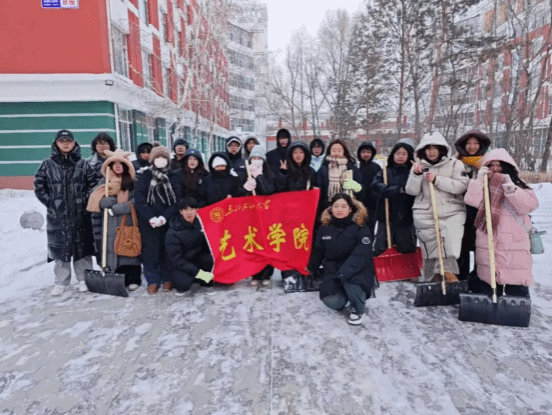 在清扫过程中,同学们不畏严寒,齐心协力。学生们积极踊跃,他们手持扫帚,清扫路面的浮雪,挥舞铁锹,铲除厚厚的积雪,尽管双手冻得通红,但同学们的热情丝毫不減,分工明确,配合默契,呈现出一片热火朝天的劳动景象。在大家的共同努力下,经过数小时的奋战,米乐mile体育官网分担区的主要道路、人行道及公共区域的积雪被彻底清理干净,道路重新恢复了往日的整洁与畅通。