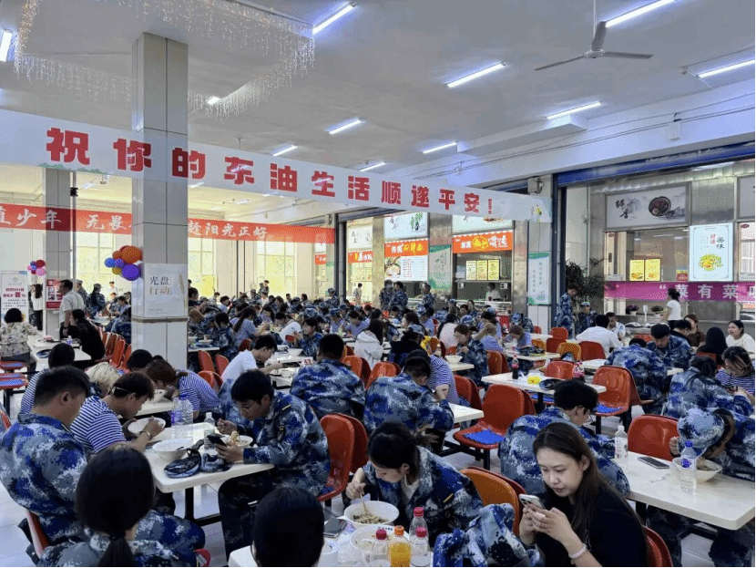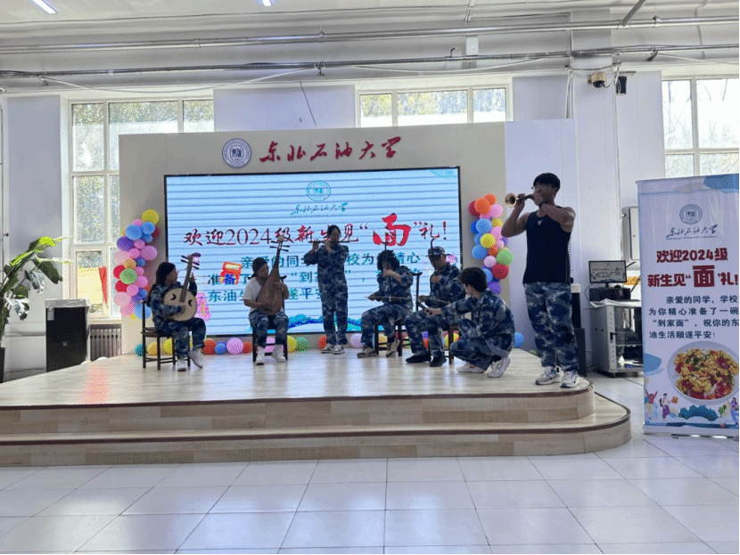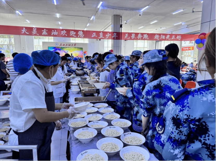 当新生们陆续走进食堂,看到那摆放整齐的面条和热情洋溢的欢迎标语时,脸上露出了惊喜与感动的笑容。他们或三两结伴,或独自品尝,在这温馨的氛围中,开始了他们在东北石油大学的全新旅程。
