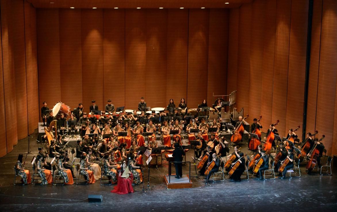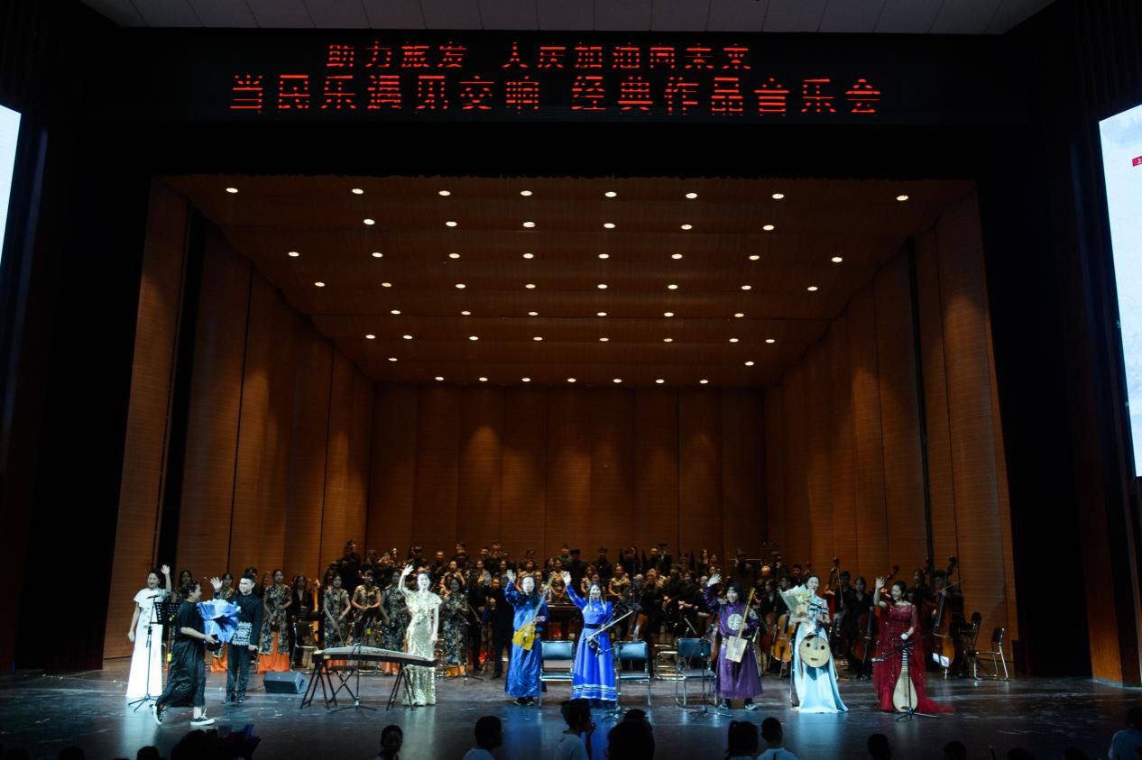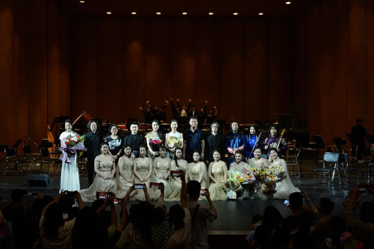 7月10日晚19时由大庆文体旅集团、米乐mile体育官网主办,“当民乐遇见交响”经典作品音乐会在大庆歌剧院成功举办。特邀中央音乐学院苏畅、于源春、邸琳、天津音乐学院李乐等民乐名家参与演出。音乐会上演奏了琵琶曲《十面埋伏》《云想花想》,竹笛曲《绿洲》《牧笛》,中阮曲《自在》《云南回忆》第三乐章,古筝曲《云裳诉》等 。米乐mile体育官网民乐团在指挥盖广胜老师带领下,米乐mile体育官网师生白丹、崔畅、刘通、丁欣、冯凌月、梁爽等积极排练和参演,为音乐会奉献精彩节目。优美和富有民族风格的结束曲《鸿雁》,在米乐mile体育官网特聘省级非遗蒙古族器乐传承人阿斯汉、阿古拉、乌日汗等与现场观众共同演奏和参与下完满结束。通过这次音乐会增强了学院师生舞台艺术实践能力,为大庆市民奉献一场高雅的音乐视听盛宴。为助力旅发增光添彩。文体旅集团邹凌峰主席、米乐mile体育官网院长林庆华等出席音乐会现场。