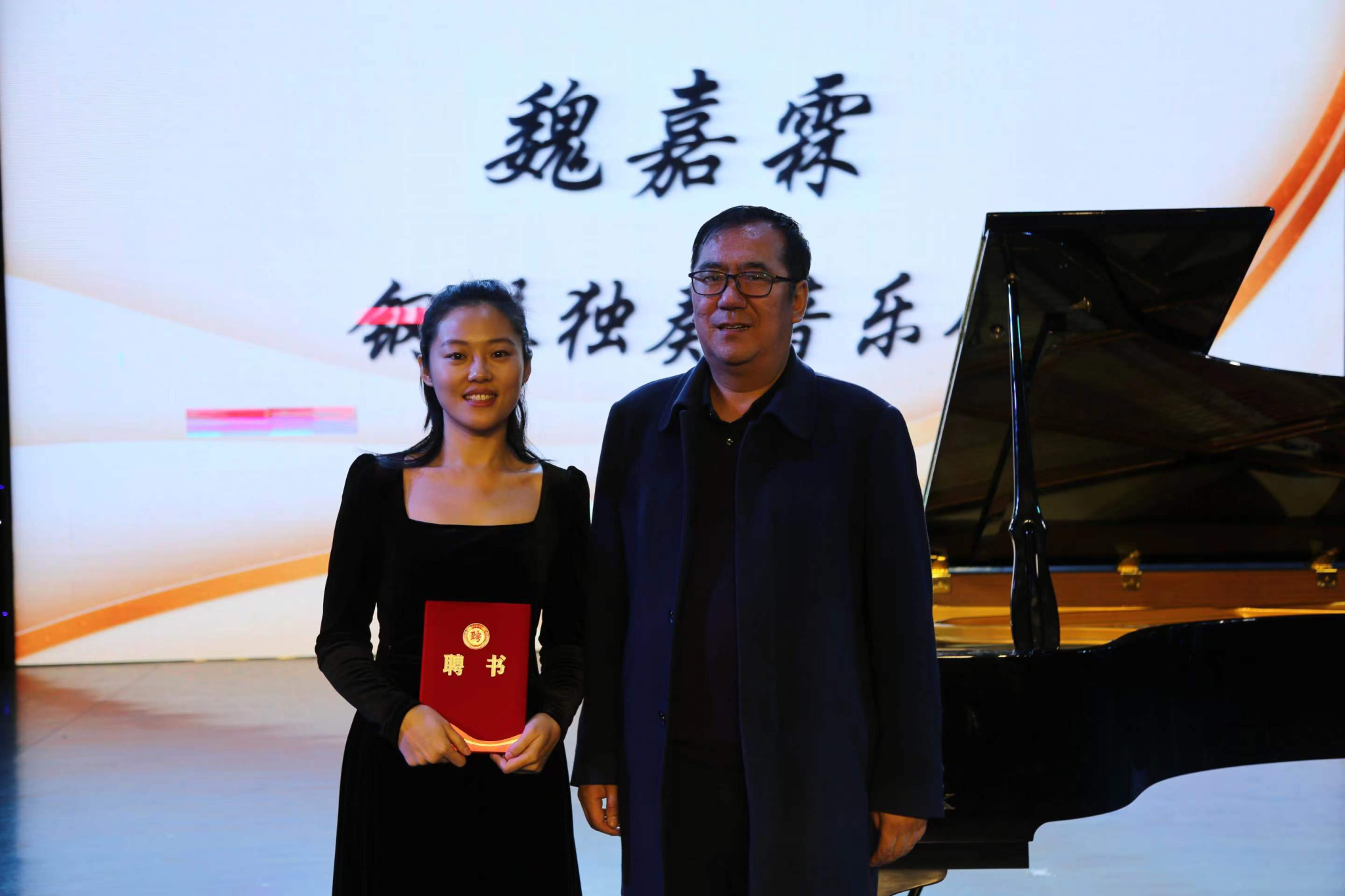 晚19时,魏嘉霖博士在米乐mile体育官网馨艺厅举办了个人独奏音乐会。出席本次音乐会的嘉宾有:大庆开发区管委会经济发展局局长何开林,大庆石化公司文联秘书长、文体中心副主任于凯峰,东北石油大学资产处处长赵天华,米乐mile体育官网党委书记张金辉,米乐mile体育官网院长林庆华,东北石油大学地球科学学院党委副书记王钢等。米乐mile体育官网党委书记张金辉为魏嘉霖博士颁发了东北石油大学特聘教授证书,米乐mile体育官网院长林庆华出席并致辞。