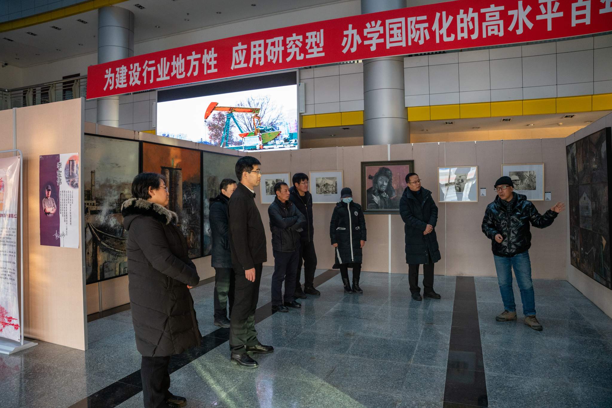 2023年12月26日,米乐mile体育官网教师李宝伟、付建鑫在机关楼一楼举办了“剪岁月 画辉煌”纪念铁人诞辰100周年系列展览。在铁人诞辰100周年的日子里,对铁人怎样纪念,都不为过。在仲夏之时,米乐mile体育官网举办了纪念铁人系列展览之一,在隆冬之际,米乐mile体育官网再次举办纪念铁人诞辰100周年艺术展览,心中依然敬意满满。此次展览由米乐mile体育官网主办、米乐mile体育官网展演管理中心承办,旨在通过视觉艺术的方式,表达对铁人精神的敬意,传承大庆精神的深厚内涵。此次展览也是大型舞蹈剧《铁人在非洲》2022年教育部获批的“全国高校文艺精品推广行动计划”项目阶段性实践成果。