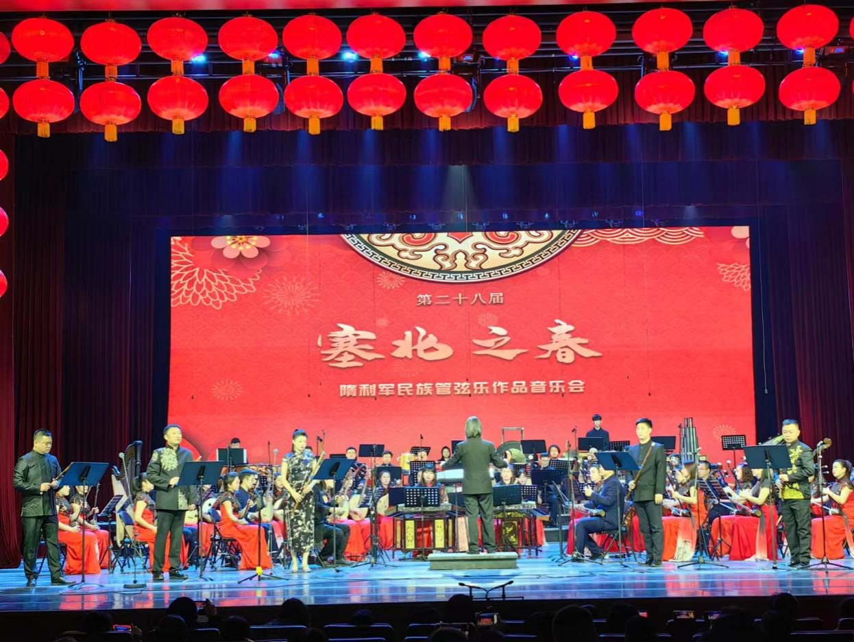 2024年1月19日第二十八届“塞北之春”隋利军作品音乐会在黑龙江省歌舞剧院音乐厅隆重上演、由黑龙江省歌剧舞剧院、黑龙江省民族管弦乐学会主办、省歌剧院民乐团、省民管会指挥专业委员会协办,邀请黑龙江省八位优秀指挥家共同为此次音乐会执棒、音乐会演奏了著名作曲家隋利军先生的十一首作品,首演作品四首。米乐mile体育官网教师盖广胜应邀指挥并首演了群笛与乐队《鹤鸣之舞》。这也是米乐mile体育官网教师首次与黑龙江省最优秀的职业乐团合作,对于促进米乐mile体育官网学科发展,加强与专业乐团的交流合作,为宣传和推动米乐mile体育官网舞台教学实践发展起到了重要作用。通过与省歌剧院民乐团的合作,完美展示了音乐作品,反映了东北地方音乐特色及人与自然和谐相处的黑土文化。受到了专家的肯定和观众的好评。为哈尔滨市民奉献了一场精彩的视听盛宴。参加音乐会的有中国民族管弦乐学会、黑龙江省文化旅游厅、省歌舞剧院领导以及国际友人等。此次音乐会也为时下热闹非凡的黑龙江省冰雪文化增光、添彩。20日上午在黑龙江省歌剧舞剧院会议室举办“隋利军民族管弦乐作品”研讨会,盖广胜老师参会并发言。为此次活动划上完美句号。