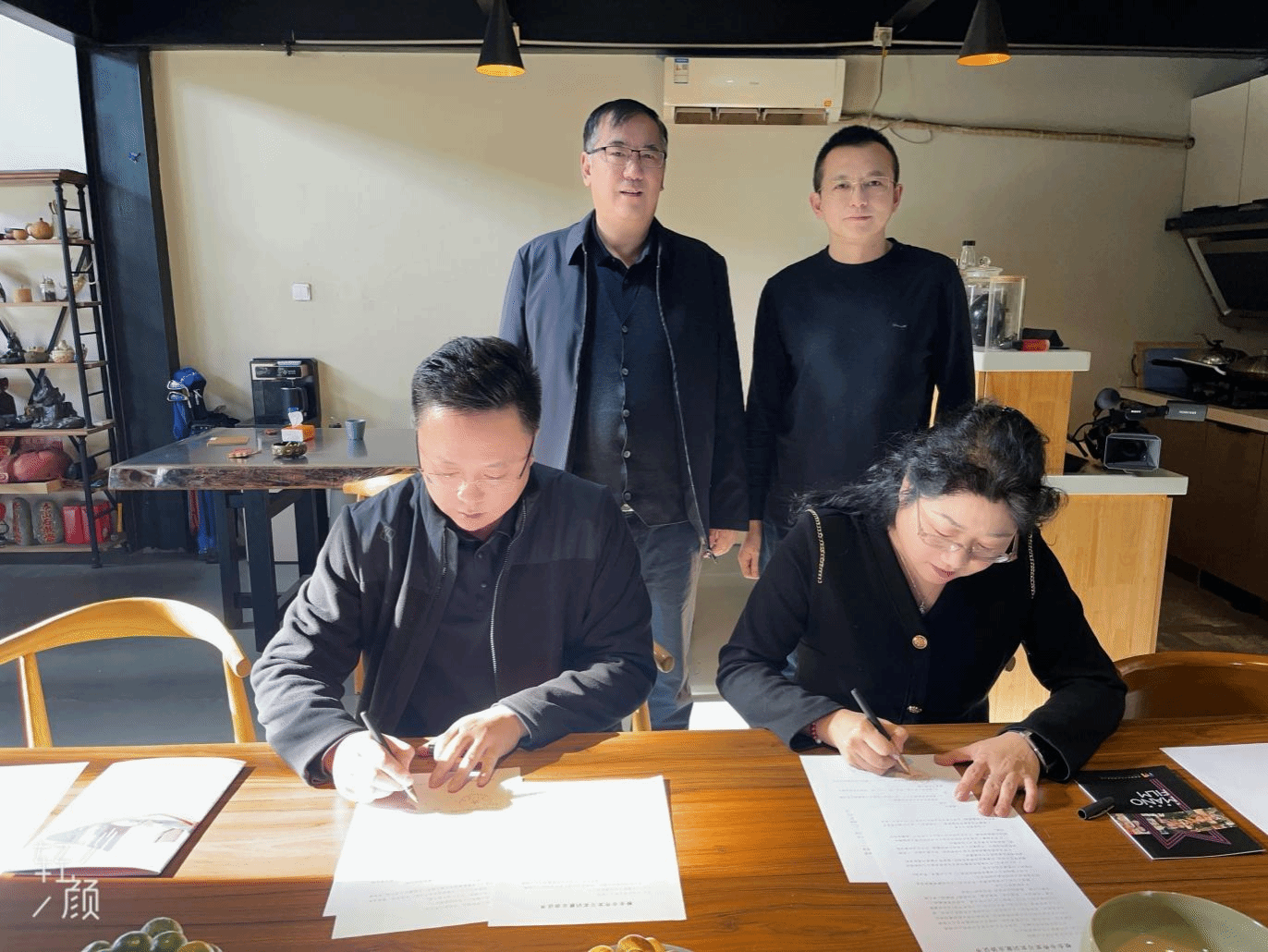 林庆华与董明安签署了《校企合作实习实训就业协议书》,林庆华院长向董明安经理赠送了米乐mile体育官网的特色文创徽章。