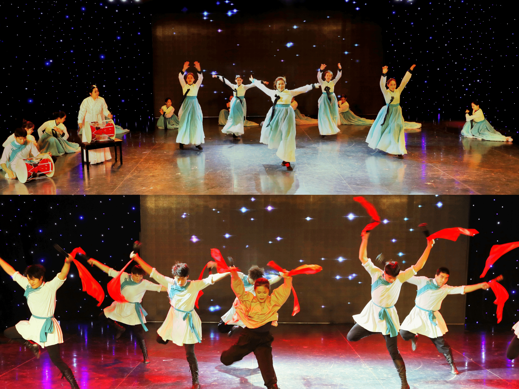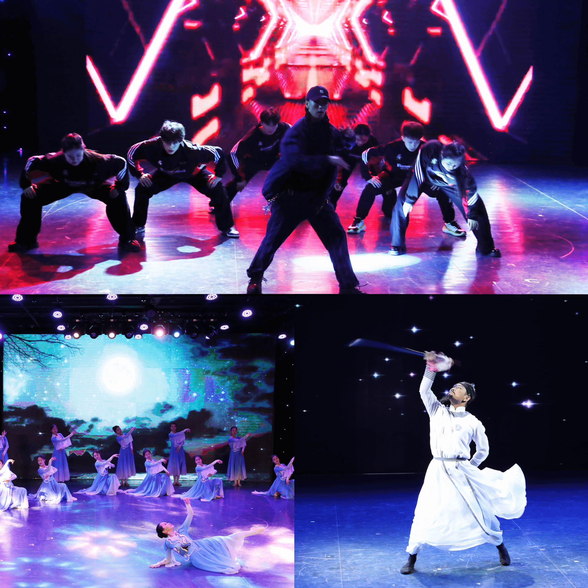 芭蕾舞《葛贝利亚》运用肢体表现对制作木偶的痴迷;东北秧歌《大姑娘美》舞出东北人率真、火辣的性格;当代舞《雨花石的等待》再现默默守望理想与希望的英烈;古典舞《象山水月》以写意手法营造出人与自然和谐共生的生命影像;民族民间舞《东北民谣》+《筷子舞》融合了东北秧歌律动元素与节奏明快的筷子声;流行舞《buttons》展示没有束缚,只有自由的舞蹈世界;舞剧《李白》片段——《将进酒》气势豪迈,感情奔放;朝鲜舞《红太阳照边疆》动作舒展优美,情感真挚热烈。