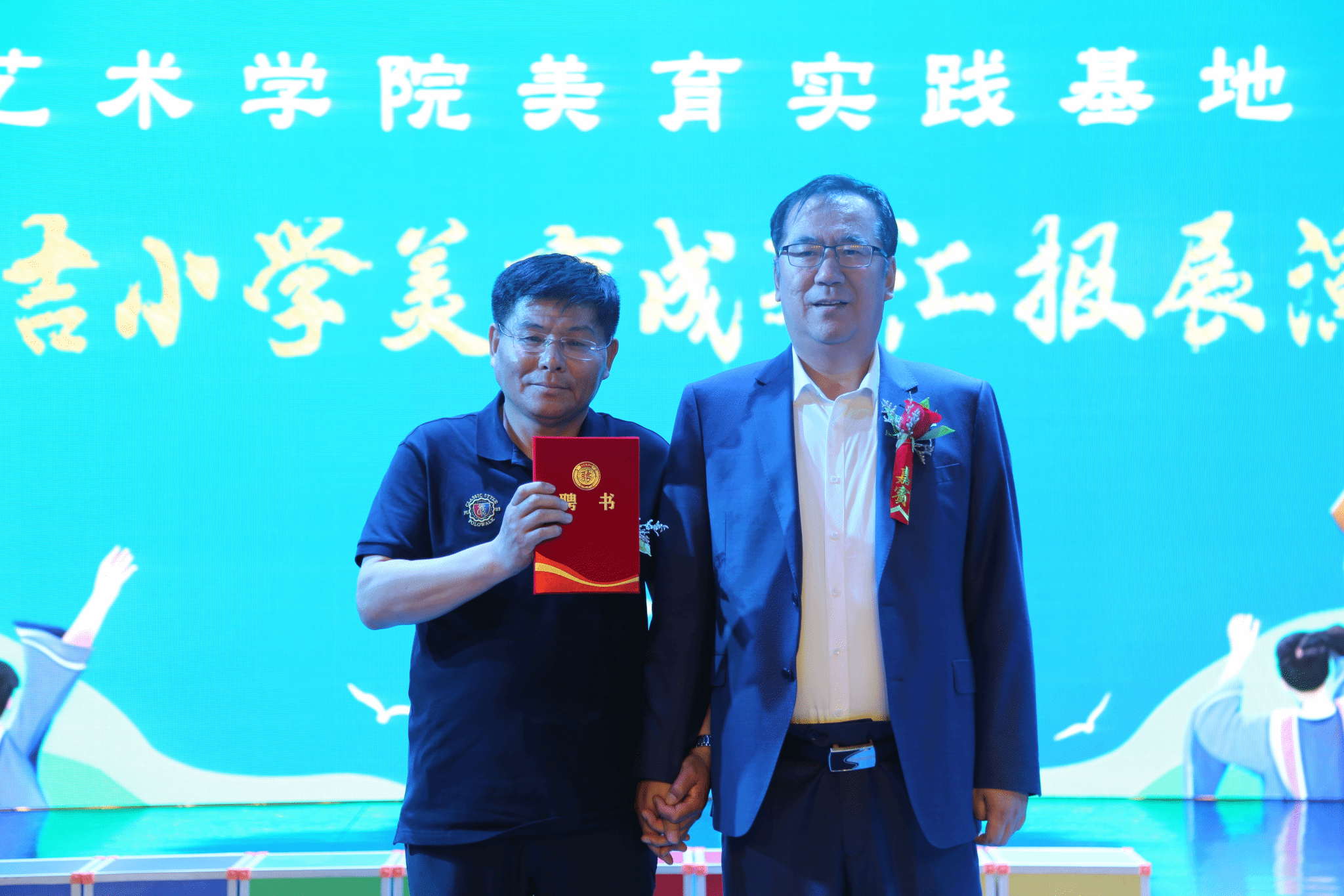 米乐mile体育官网党委书记张金辉为民吉小学教师常国英颁发聘书,聘任其为米乐mile体育官网民吉学校美育基地主任。院长林庆华、副书记张丽坤、副院长董万多为民吉小学的同学们赠送了礼物。