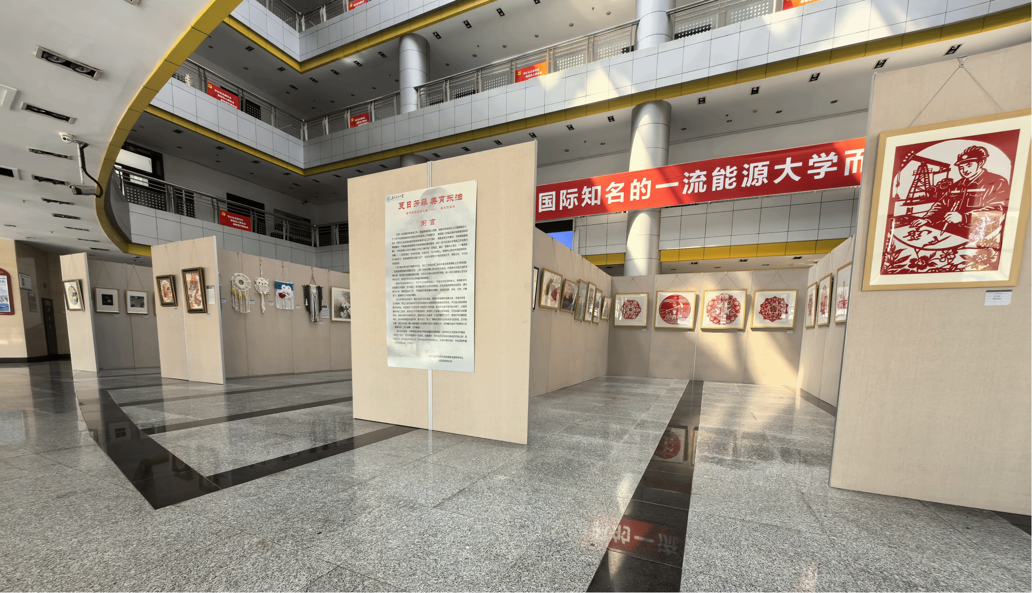 仲夏六月,艺术气息馥郁绽放,米乐mile体育官网倾力打造的“夏日芳菲 美育东油”美育教学成果展,于2025年6月24日在校机关楼一楼盛大启幕。此次展出美术作品为米乐mile体育官网美育发展研究中心针对全校理工科学生,开设的美育课程成果的集中展示。汇集学生精心创作的70件美术作品,涵盖油画、国画、剪纸、插画、衍纸、摄影、壁挂编制、珐琅彩制作等多个美术种类,全面呈现了学院近年来在美育教学方面取得的丰硕成果,为校园内外献上一场视觉与心灵的盛宴。