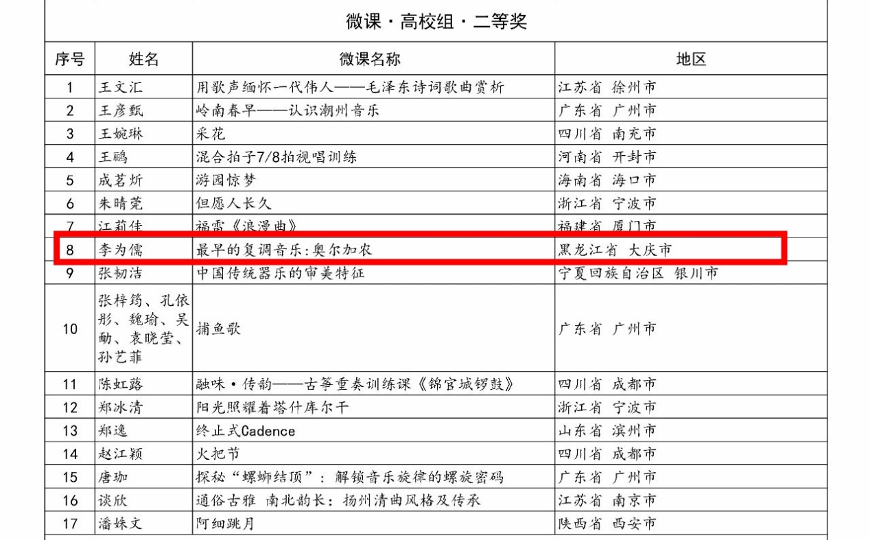 2025 “万叶杯”音乐微课与课件征集活动结果揭晓,米乐mile体育官网音乐系李为儒老师的微课作品《最早的复调音乐:奥尔加农》,凭借专业特色鲜明、设计创新、技术精湛,在众多作品中脱颖而出,荣获微课高校组二等奖,彰显米乐mile体育官网教师在音乐教育信息化领域的实力。
