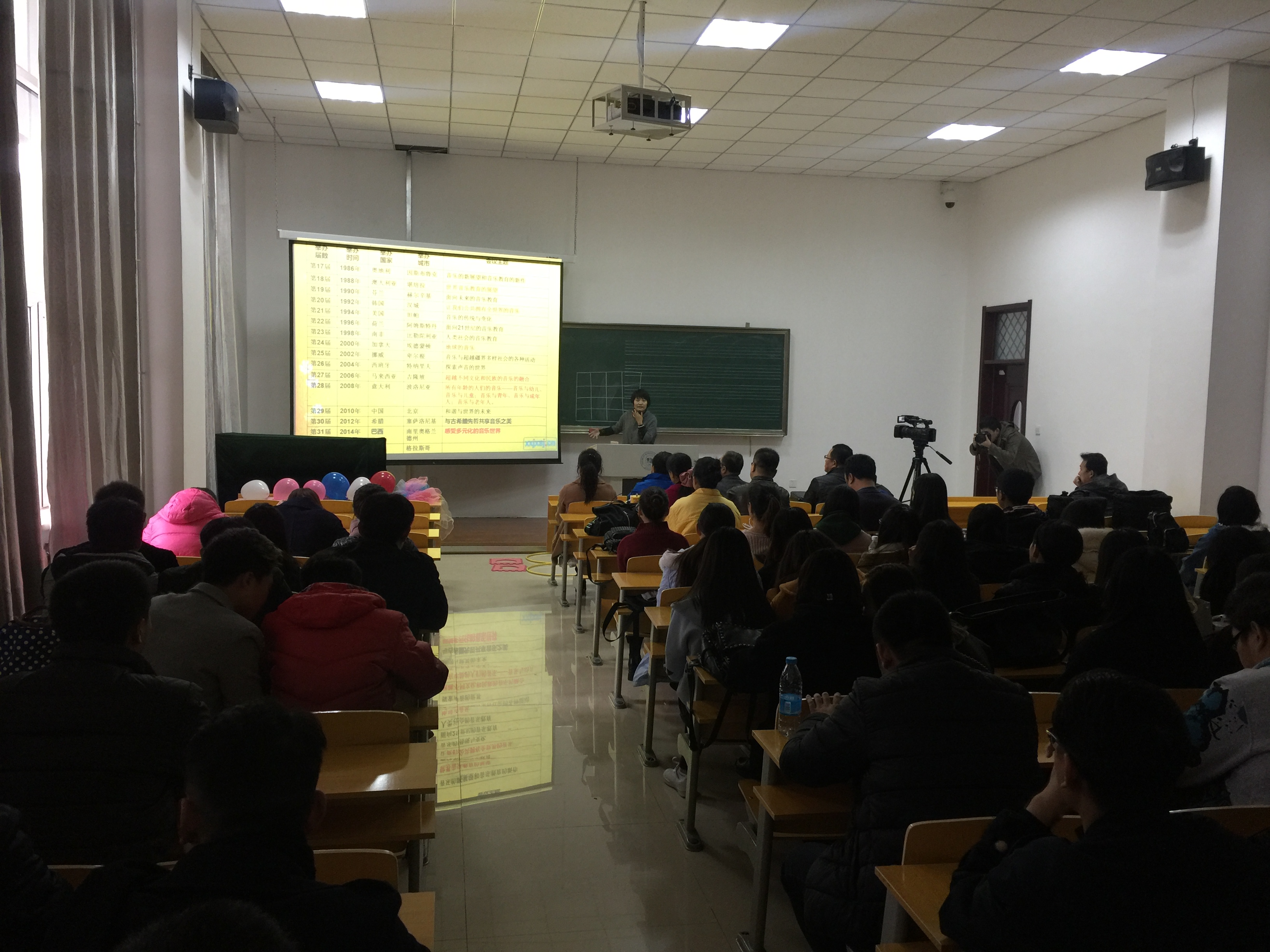 闫红老师做了题为“世界音乐教育大会背景下的中国多元文化音乐教育模式创新研究与探索”的学术报告,她结合自身的实践经验和研究成果,理论联系实际,对多元文化音乐教育模式做出了详细的讲解,学术报告会上进行了多个分组音乐教学互动及奥尔夫教学法中的节奏游戏,让同学们感受身体律动与旋律的关系,从而更深层次的理解和学习音乐。她介绍国内外了部分音乐课堂的教学现状,并与国外教学做对比研究。发现并找出我们的不足,从而提出改进教学模式。